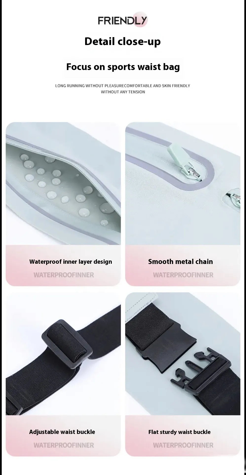 Materialet är vattenavvisande och anpassat för utomhusbruk. Reflexdetaljer bidrar till bättre synlighet i mörker, och den elastiska midjan gör att väskan passar de flesta.